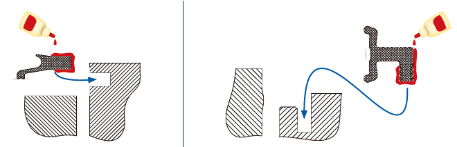 - 如果需要,請首先使用機械工具,例如帶有可折斷刀片的刀或其他合適的工具,這些工具不會損壞凹槽,并完全清除可能仍粘在凹槽中的所有密封件殘留物。