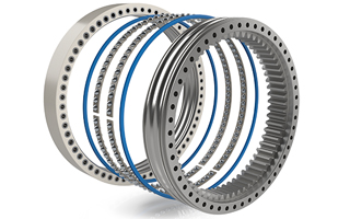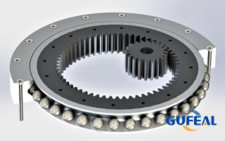 GUFEAL雙排球式回轉(zhuǎn)支承可以同時承受軸向載荷,傾斜力矩和徑向載荷。頂球主要承受軸向載荷和正向傾斜力矩。落球承受相反的傾斜力矩。因此,雙列球回轉(zhuǎn)軸承的負(fù)荷能力大于四點(diǎn)接觸球回轉(zhuǎn)軸承。但是,摩擦比要大得多。比后者。GUFEAL雙排球式回轉(zhuǎn)支承由內(nèi)圈,外圈,雙排球,墊片,密封裝置和其他組件組成。由于頂球主要承受軸向載荷和傾覆力矩載荷,因此頂球的尺寸大于落球的尺寸。為了適應(yīng)不同軸向載荷,傾覆力矩和軸向載荷的各種工作條件,接觸角將相應(yīng)調(diào)整。環(huán)的結(jié)構(gòu)可以分為整體型和剖分型兩種。通常,整體式保持較高的剛性。分體式更方便調(diào)節(jié);兩個隔離環(huán)在交付前通過螺栓固定。GUFEAL雙列回轉(zhuǎn)支承在球之間具有保持架(或間隔塊)。僅當(dāng)要求大負(fù)載時,才應(yīng)用全球類型。全球型的承載能力肯定更大。但是,這種設(shè)計所產(chǎn)生的增大的摩擦力使?jié)L珠容易劃傷。雙排回轉(zhuǎn)支承主要用于承受軸向載荷,較大的傾擺力矩以及徑向安裝位置受限的工作條件。