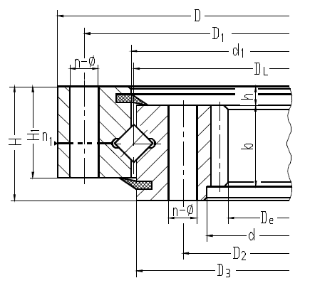 單排交叉滾柱式回轉(zhuǎn)支承(J系列),由兩個(gè)座圈組成,結(jié)構(gòu)緊湊、重量輕、制造精度高,裝配間隙小,對(duì)安裝精度要求高,滾柱為1:1交叉排列,能同時(shí)承受軸向力、傾翻力矩和較大的徑向力,被廣泛地用于建筑行業(yè),如混凝土泵車,塔式起重機(jī)和輪式起重機(jī)。