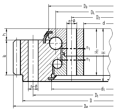雙排球式回轉(zhuǎn)支承有三個(gè)座圈,鋼球和隔離塊可直接排入上下滾道,根據(jù)受力狀況,安排了上下兩排直徑不同的鋼球。這種開(kāi)式裝配非常方便,上下圓弧滾道的承載角都為90°,能承受很大的軸向力和傾翻力矩。當(dāng)徑向力大于0.1倍的軸向力時(shí),滾道須特殊設(shè)計(jì)。雙排異徑球式回轉(zhuǎn)支承的軸向、徑向尺寸都比較大,結(jié)構(gòu)緊固。特別適用于要求中等以上直徑的塔式起重機(jī),汽車起重機(jī)等裝卸機(jī)械上。
